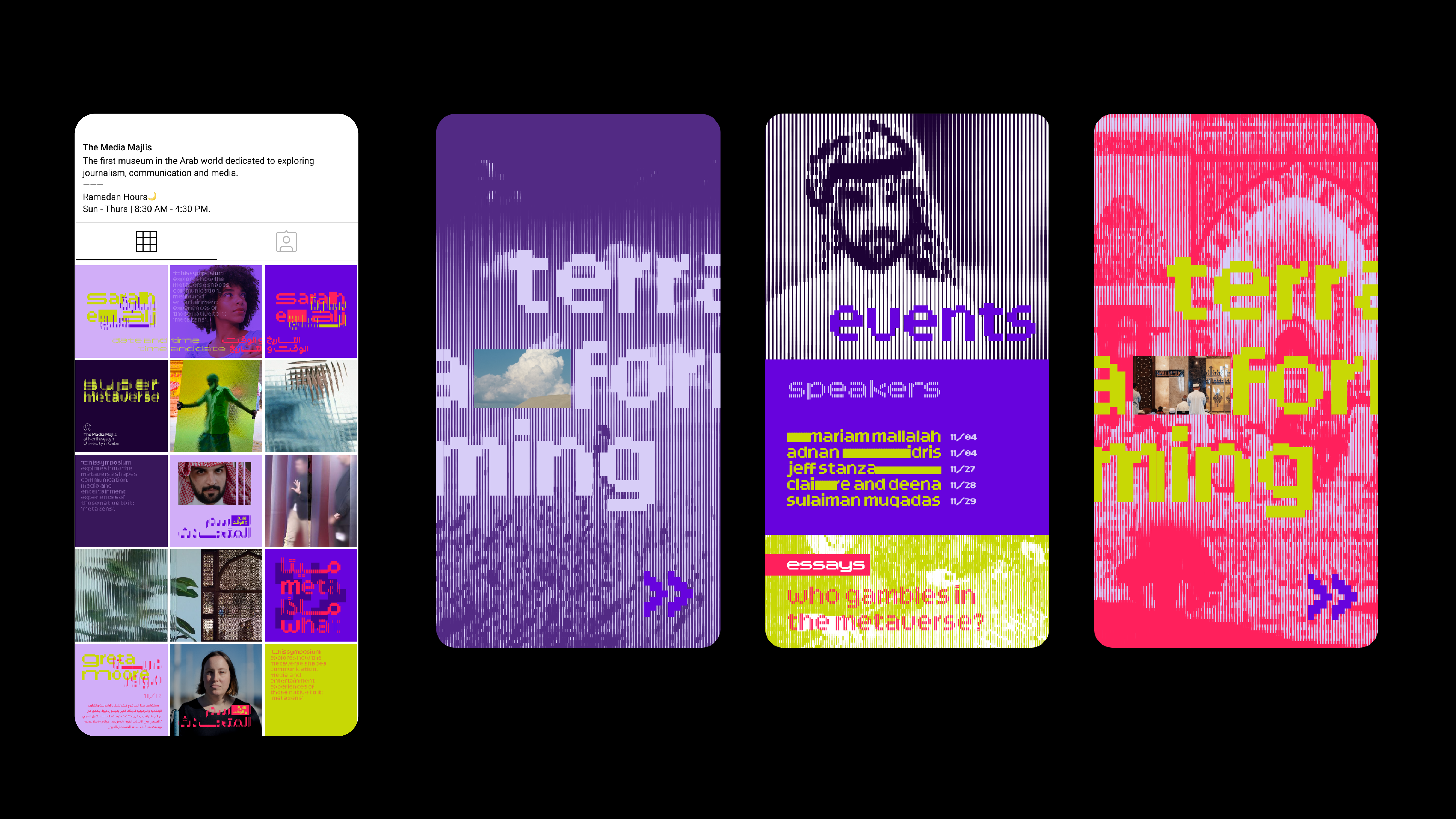 The visual language of MetaWhat? is built on one question: “What does the Metaverse enable?”. In collaboation with Khajag Apelian, we created a variable typeface that embodies the three concepts the Metaverse enables: The capacity to shapeshift, a sensorial internet (one you access spatially) and a re-production of our current world.