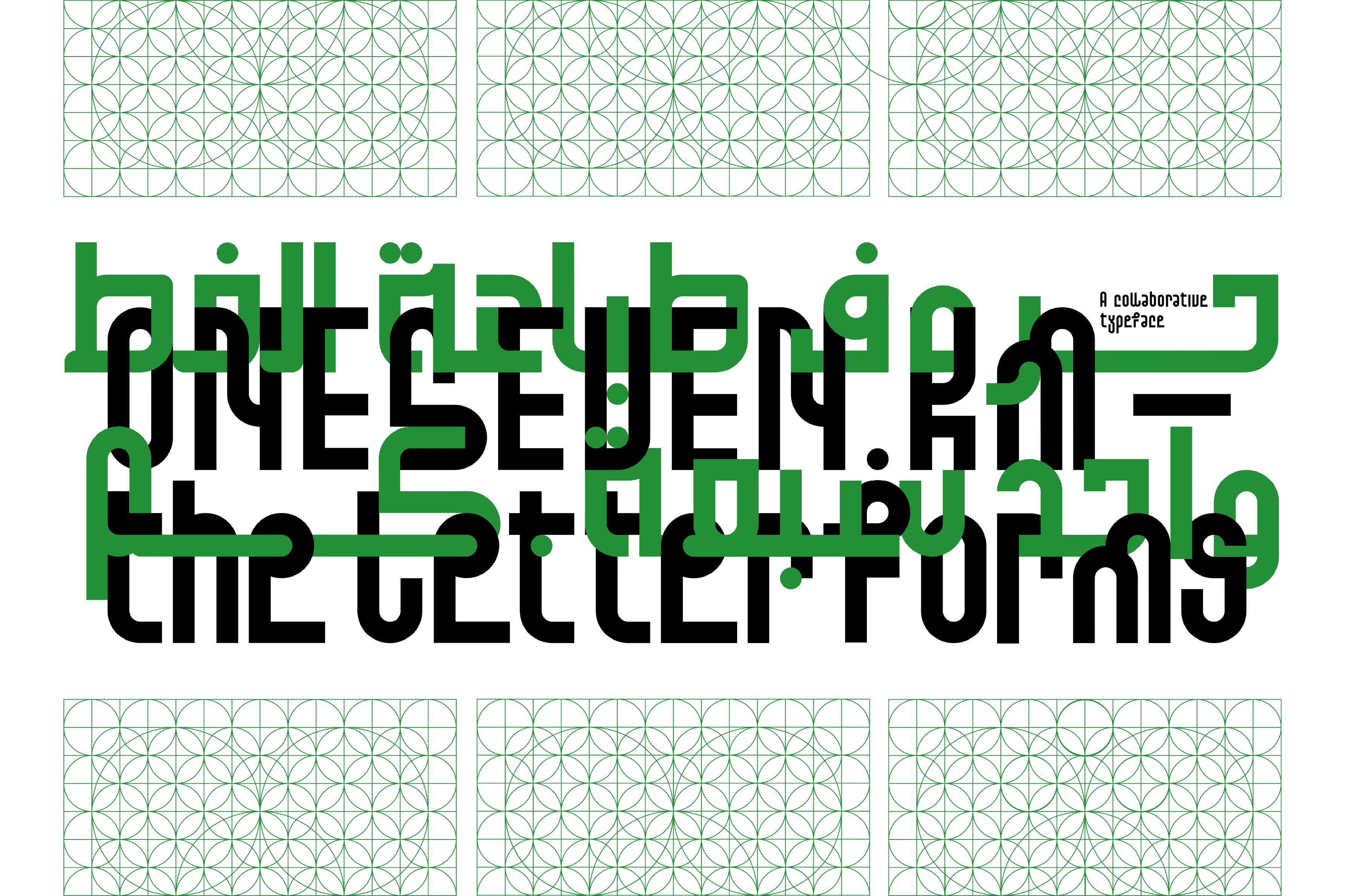 oneseven.km is a response to the need for such fonts. The applied grid is influenced by traditional Islamic geometry, constructed as an infinitely repeated pattern similar to that which adorns Islamic architecture as ornamentation formed from geometric and interlaced patterns.